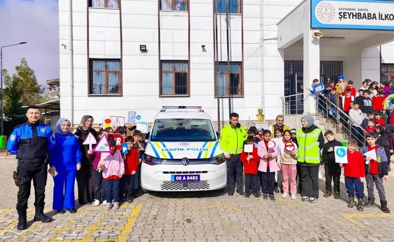 Adıyaman’ın Kahta İlçe Emniyet Müdürlüğü tarafından ilkokul öğrencilerine yönelik trafik eğitimi verildi.
