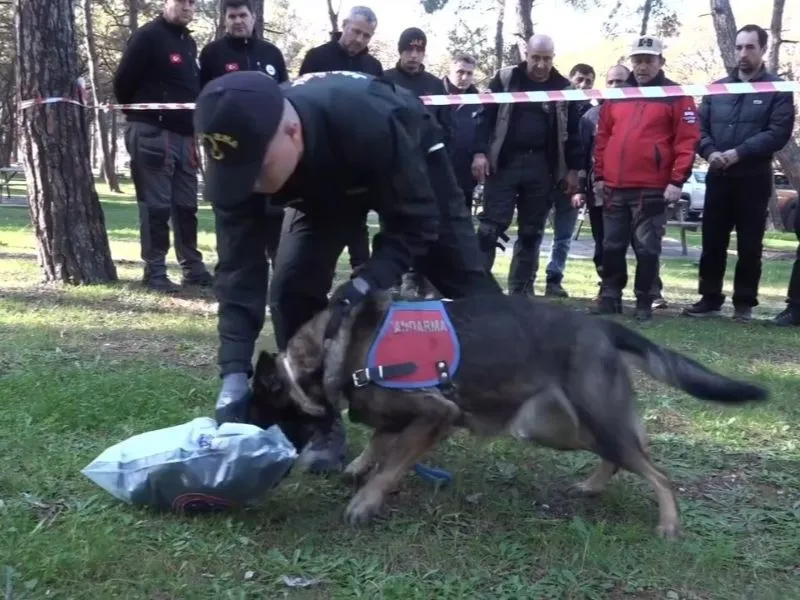 Tekirdağ İl Jandarma Komutanlığı ekipleri, iz takip köpeği ‘Mercek’in katılımıyla Atatürk Orman Çiftliği’nde kayıp arama tatbikatı gerçekleştirdi.